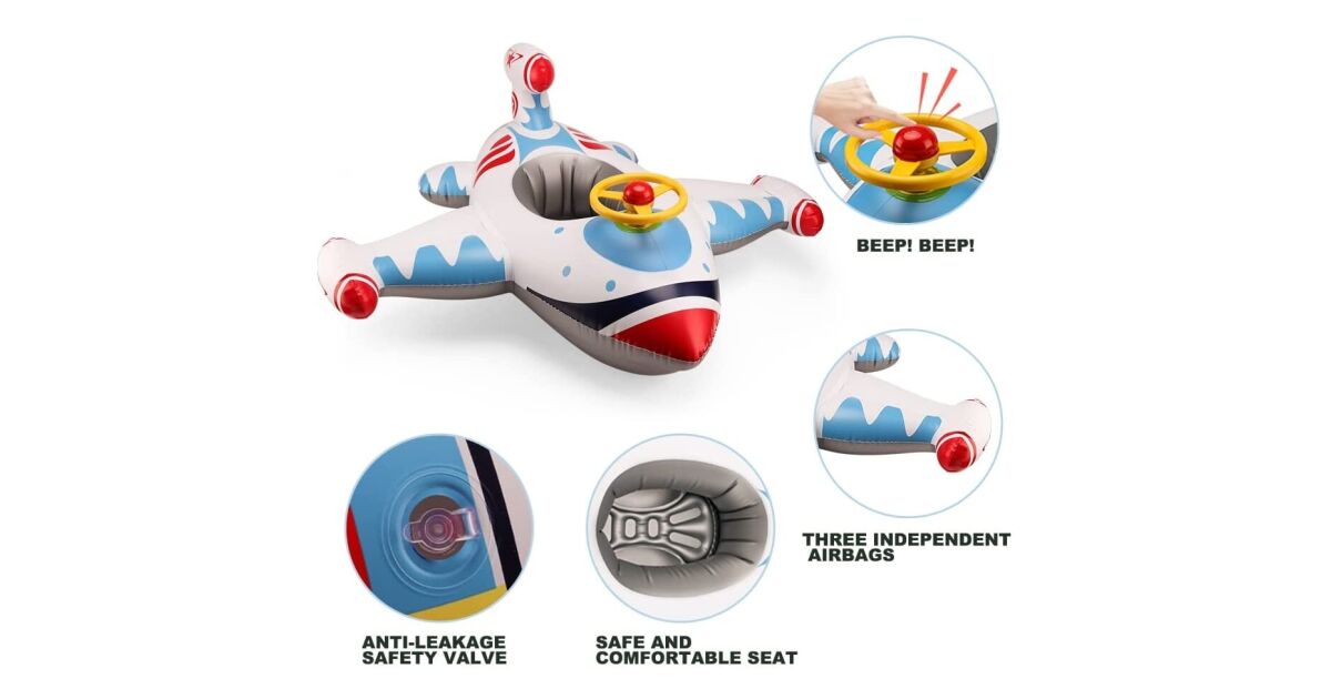 Ezt a terméket így is ismerheted: Macvi® Felfújható gyermek felfújható úszóbója, repülőgép modell, kormánykerékkel és kürttel, többszínű, 1-4 éves korig, tartós anyagból készült
