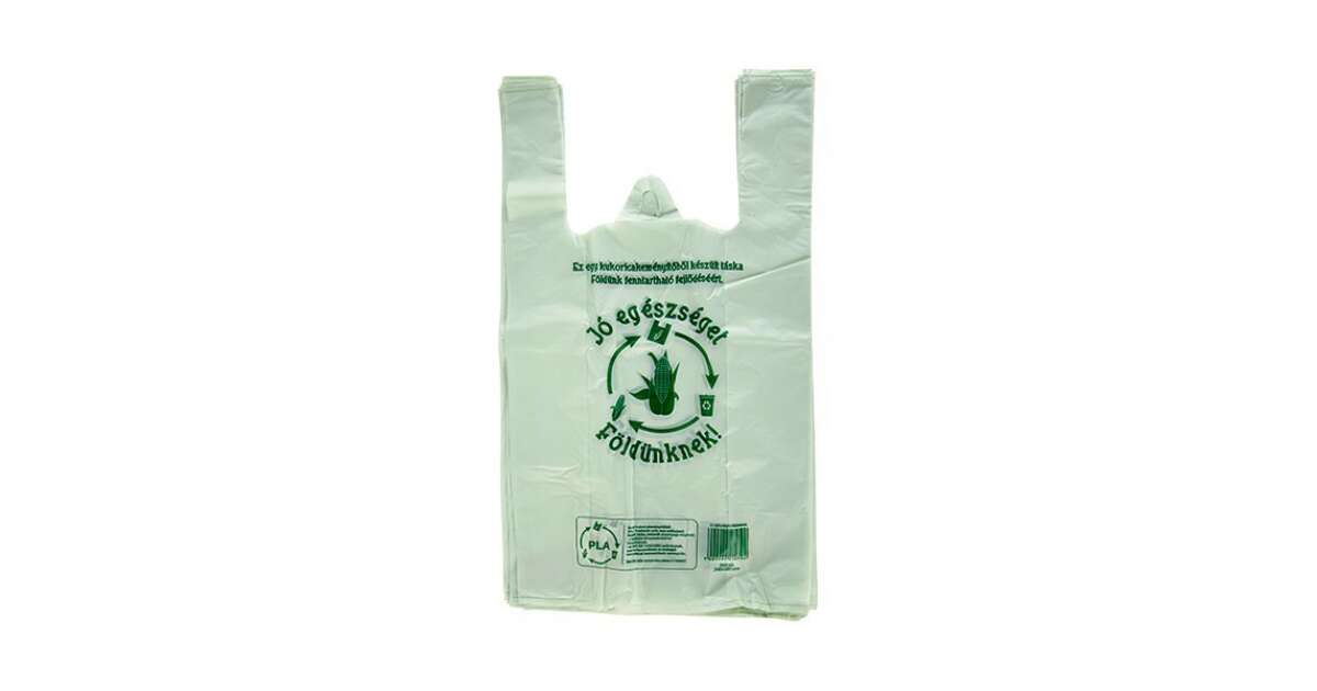 Ez a 100 darabos ingvállas táska kiváló választás a környezettudatos vásárlók számára! Készüljön kukoricakeményítőből, így biológiailag lebomló és komposztálható, megfelelve az MSZ EN 13432:2000 szabványnak. ♻️