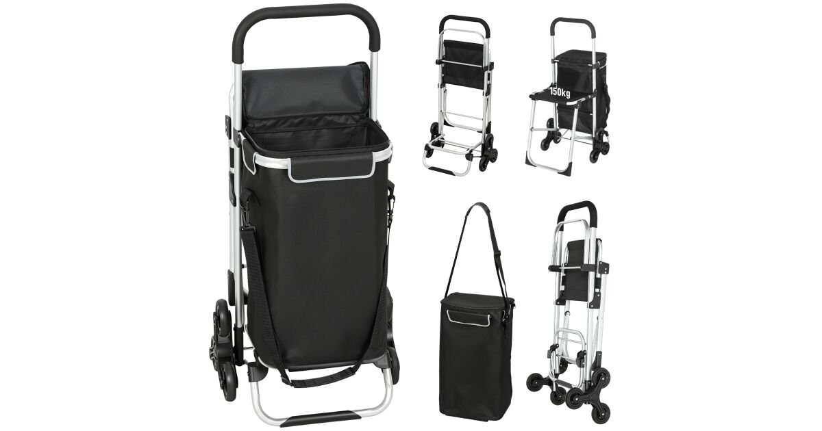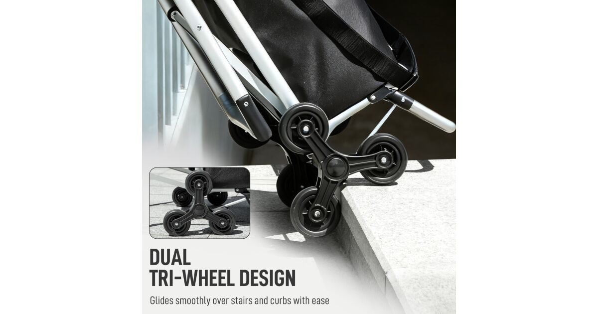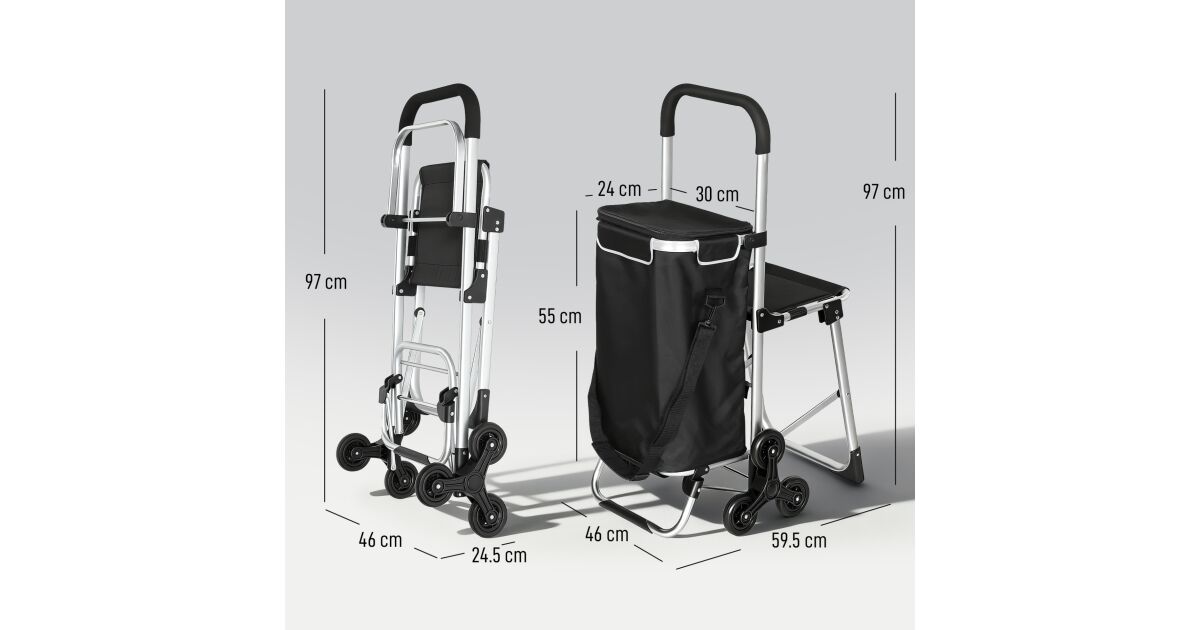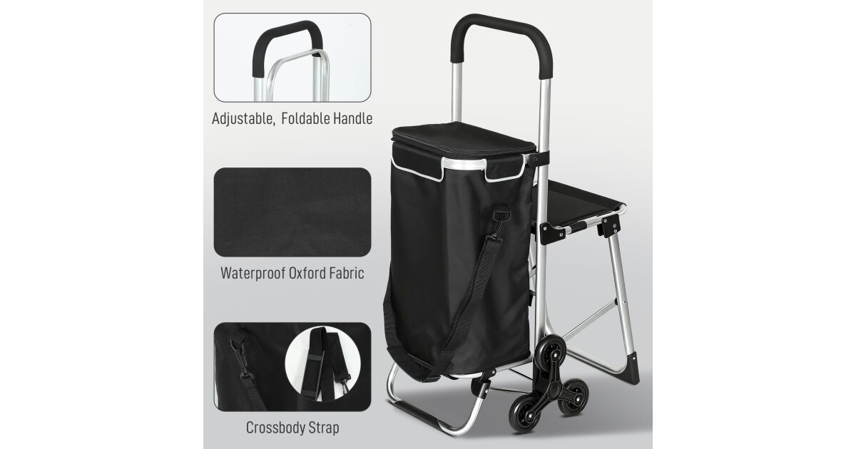 Ezt a terméket így is ismerheted: HOMCOM Bevásárlókocsi 40 literes vízálló táskával, 46x59,5x97 cm, fekete és ezüst