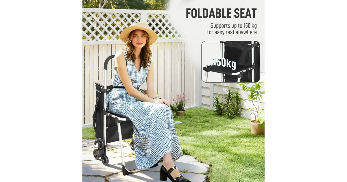 HOMCOM Összecsukható Bevásárlókocsi Üléssel - Kényelem és Praktikum Egyben! 🛒