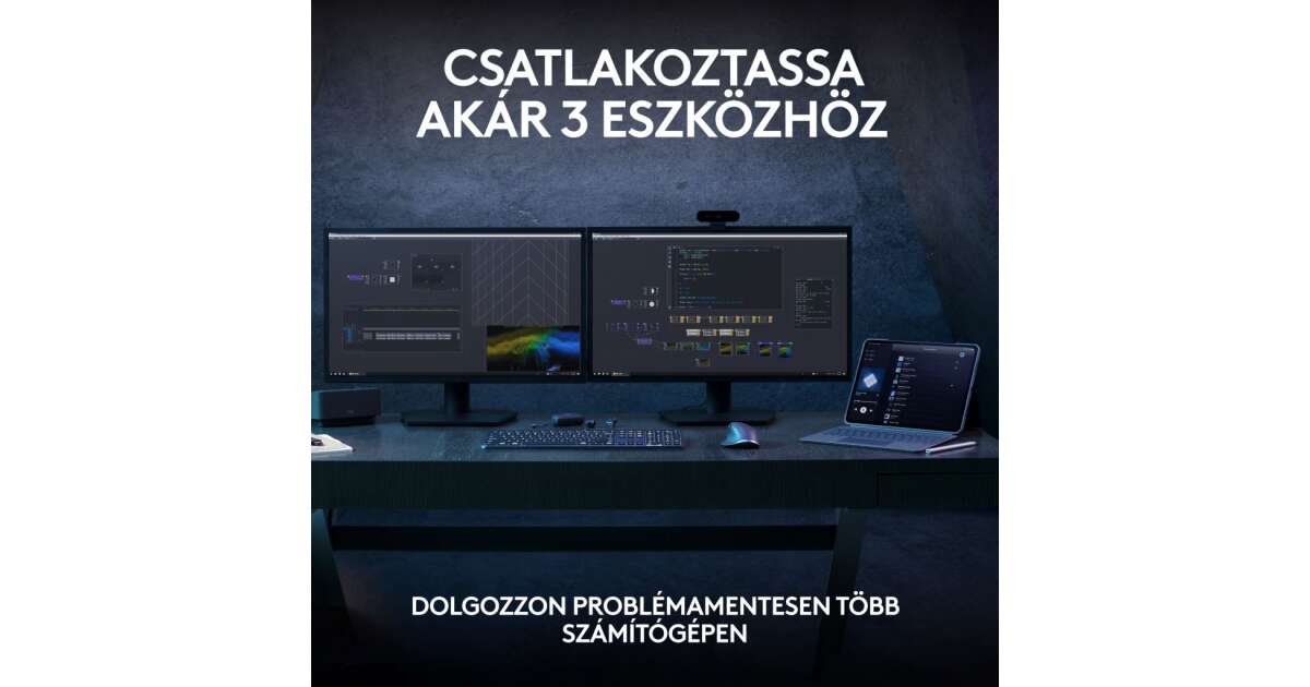 - Több eszköz támogatása: Egyszerűen válthat akár 3 eszköz között egyetlen gombnyomással. Kompatibilis Windows, macOS és ChromeOS rendszerekkel.