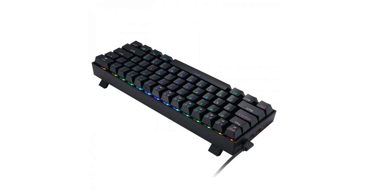 Billentyűzet, Bluetooth, Tenkeyless (TKL), Megvilágítás, Mechanikus switch, Brown switch, Black, HUN, RGB, Gamer Az első Redragon 60% billentyűzet