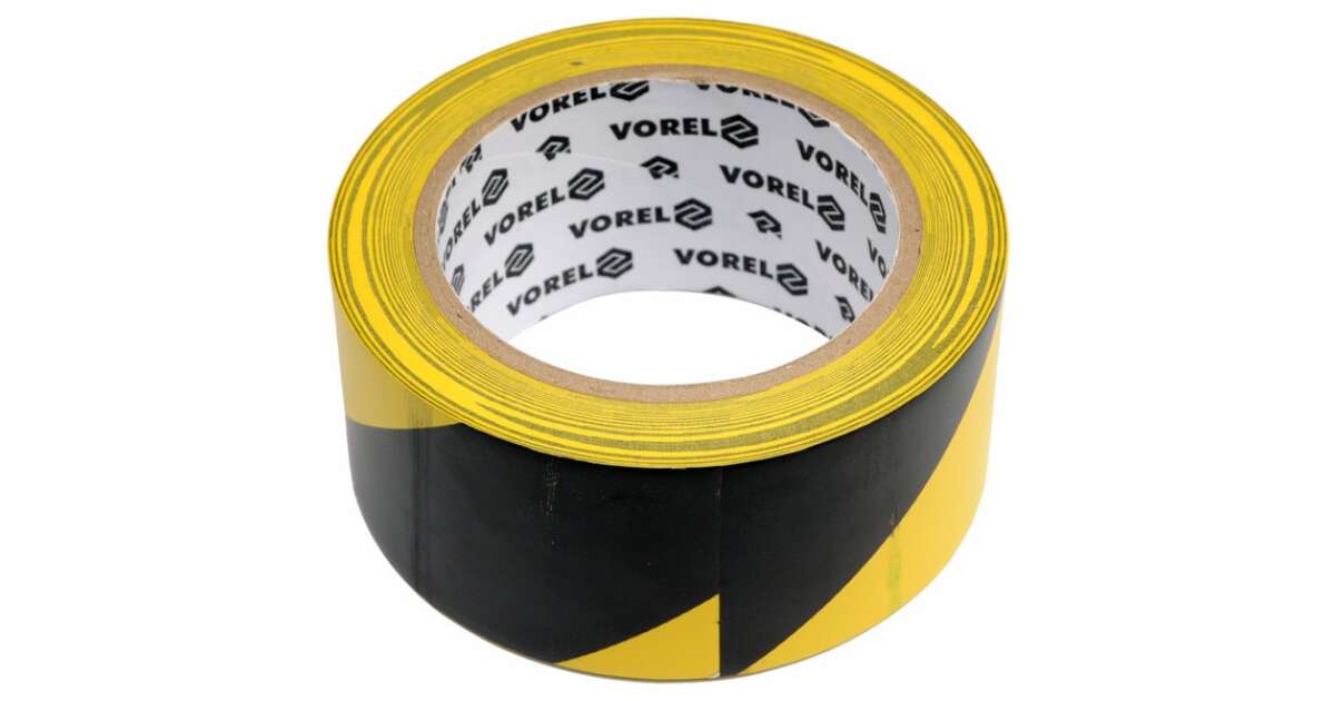 VOREL Jelzőszalag - Fekete-Sárga - 48 mm x 33 m - PVC leírása