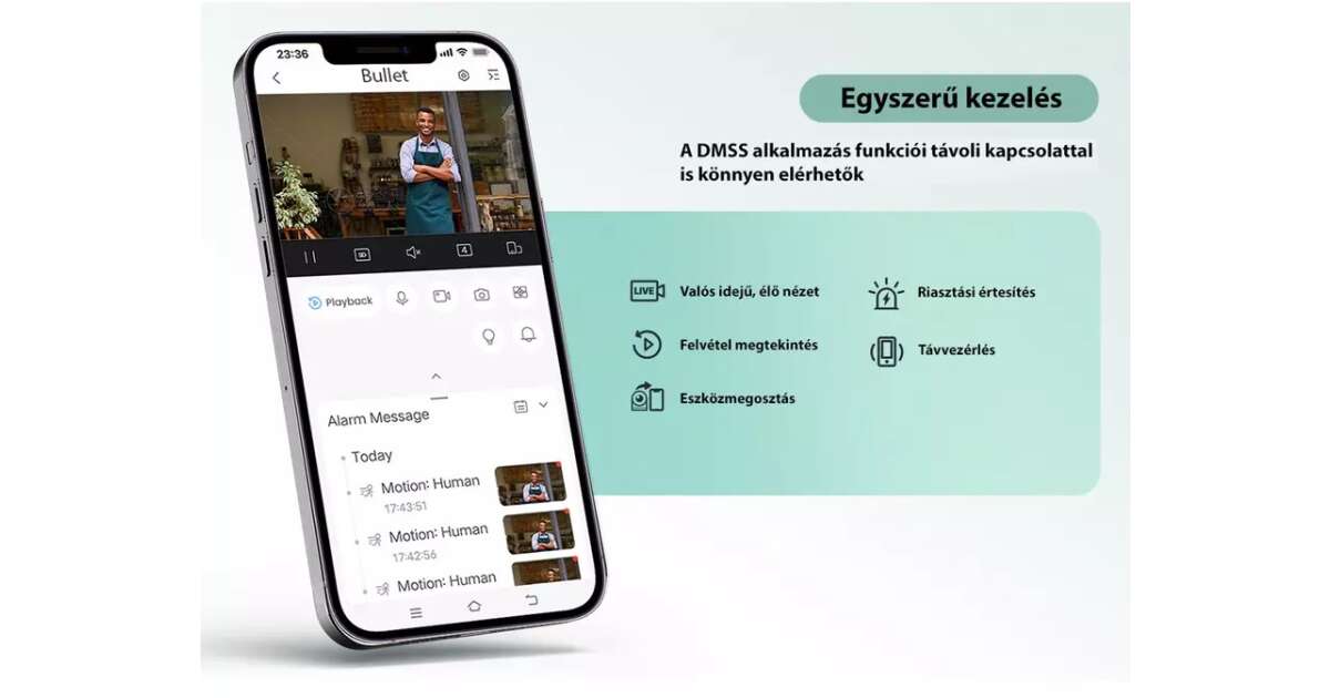 - Beépített mikrofon és hangszóró: Kétirányú kommunikáció lehetősége.