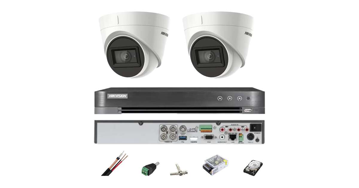 CCTV rendszer Hikvision 2 beltéri kamerák 4 az 1-ben, 8MP, 2.8 lencse, IR 60m, 4 csatornás DVR, tartozékok, merevlemez