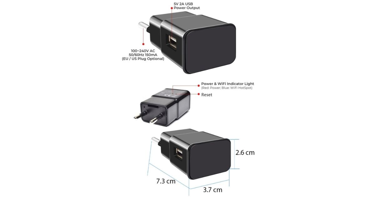 Ezt a terméket így is ismerheted: USB Töltő Kémkamerával iUni IP1000, 16GB, WiFi, 4K Nézet, Audio-Video, P2P