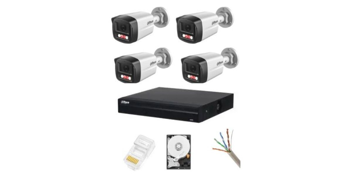 Komplett Dahua megfigyelő rendszer 4 IP kamera 4 MP Dual Light IR 30m WL 30m Mikrofon NVR 4 csatornás HDD és telepítési tartozékok