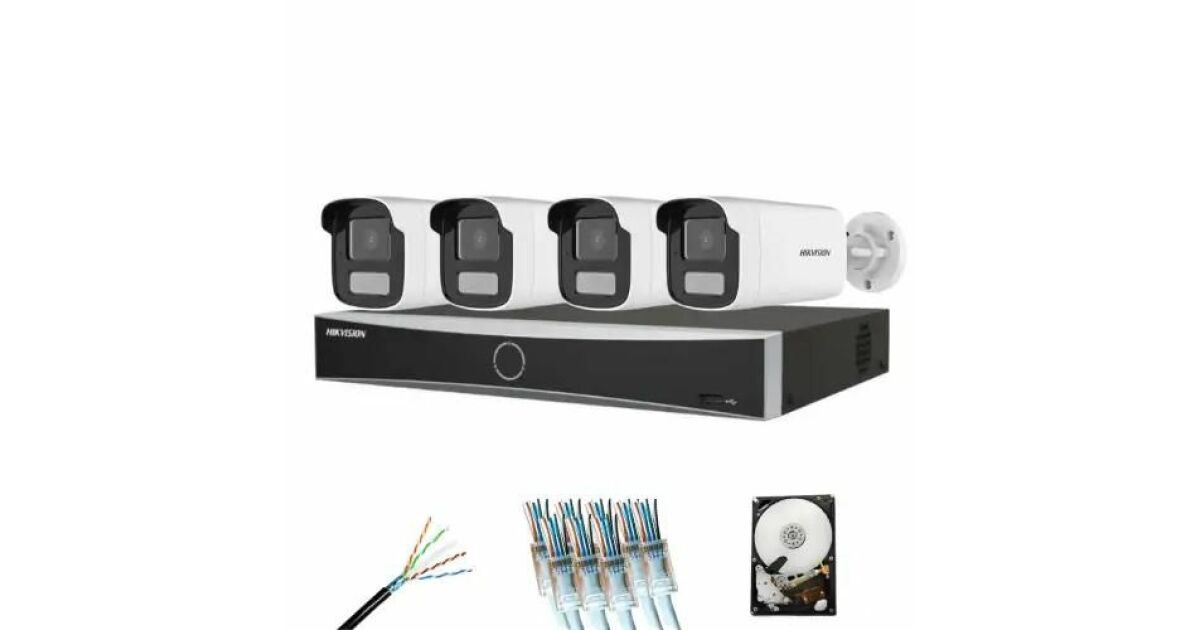 Komplett megfigyelőrendszer 4 kamera Hikvision 8MP Smart Dual Light 30m mikrofon, NVR 8 csatorna, HDD és telepítési tartozékok leírása