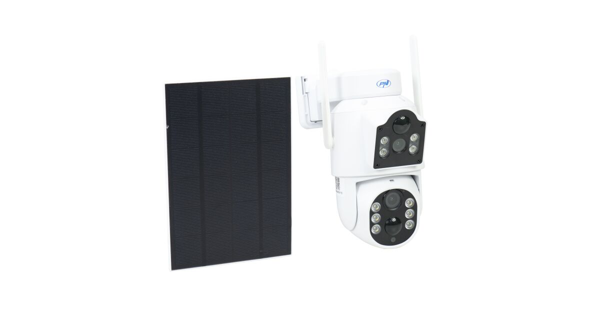 PNI IP792 videó megfigyelő kamera, dupla lencsés 2MP + 2MP, 3W napelem és MicroSD PNI 128GB memóriakártya.
