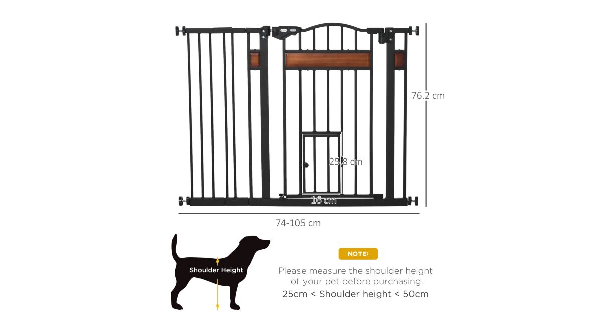 PawHut Automatikusan Záródó Kutyakapu Kis és Közepes Testű Kutyáknak, 74-105x76,2 cm, Fekete leírása