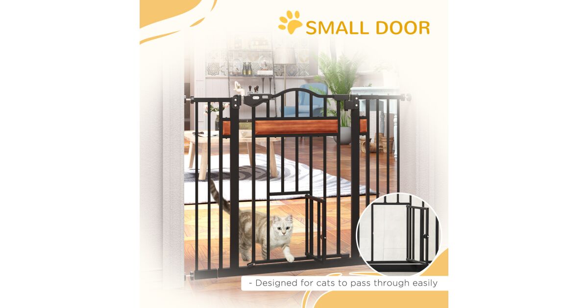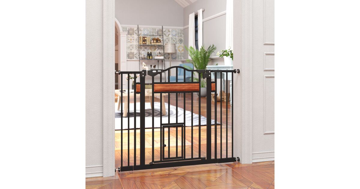 PawHut Automatikusan Záródó Kutyakapu Kis és Közepes Testű Kutyáknak, 74-105x76,2 cm, Fekete