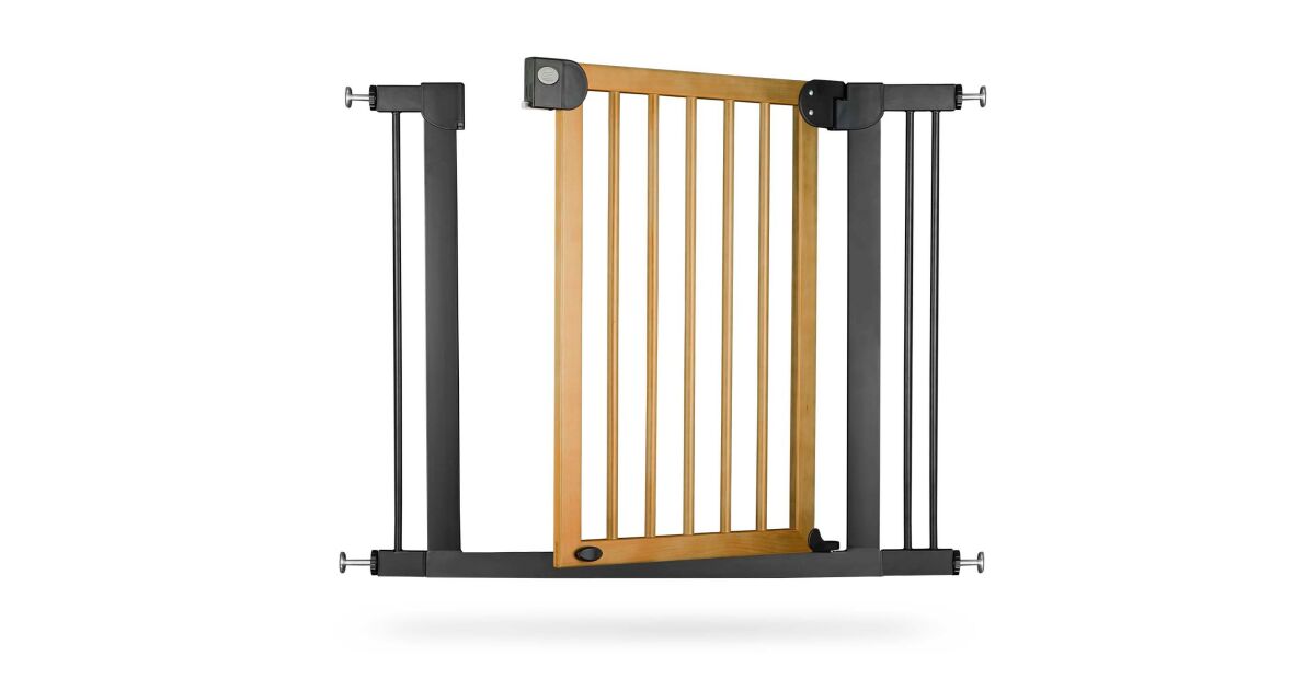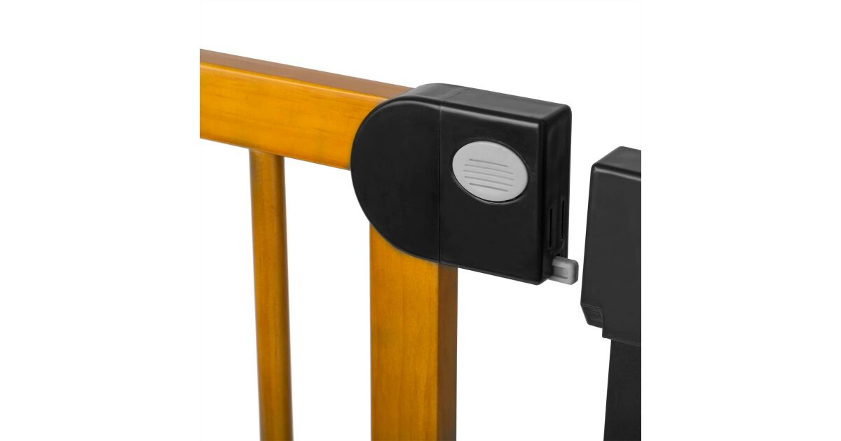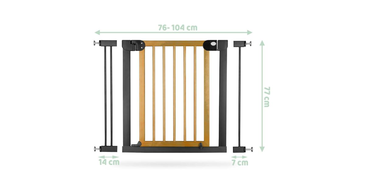 Ez a Nukido biztonsági rács ideális megoldás a gyermekek biztonságának megőrzésére otthonodban. 76-104 cm közötti szélességének köszönhetően könnyedén felszerelhető ajtókra és átjárókra, a falak vagy keretek sérülése nélkül. Elegáns fa és fekete acél dizájnja minden otthoni stílushoz illeszkedik.