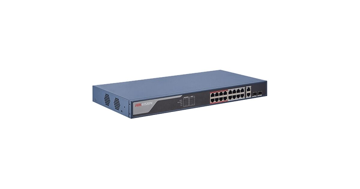 16 portos 100Mbps PoE switch, 2 portos gigabites uplink, SMART Management - HIKVISION DS-3E1318P-EI leírása