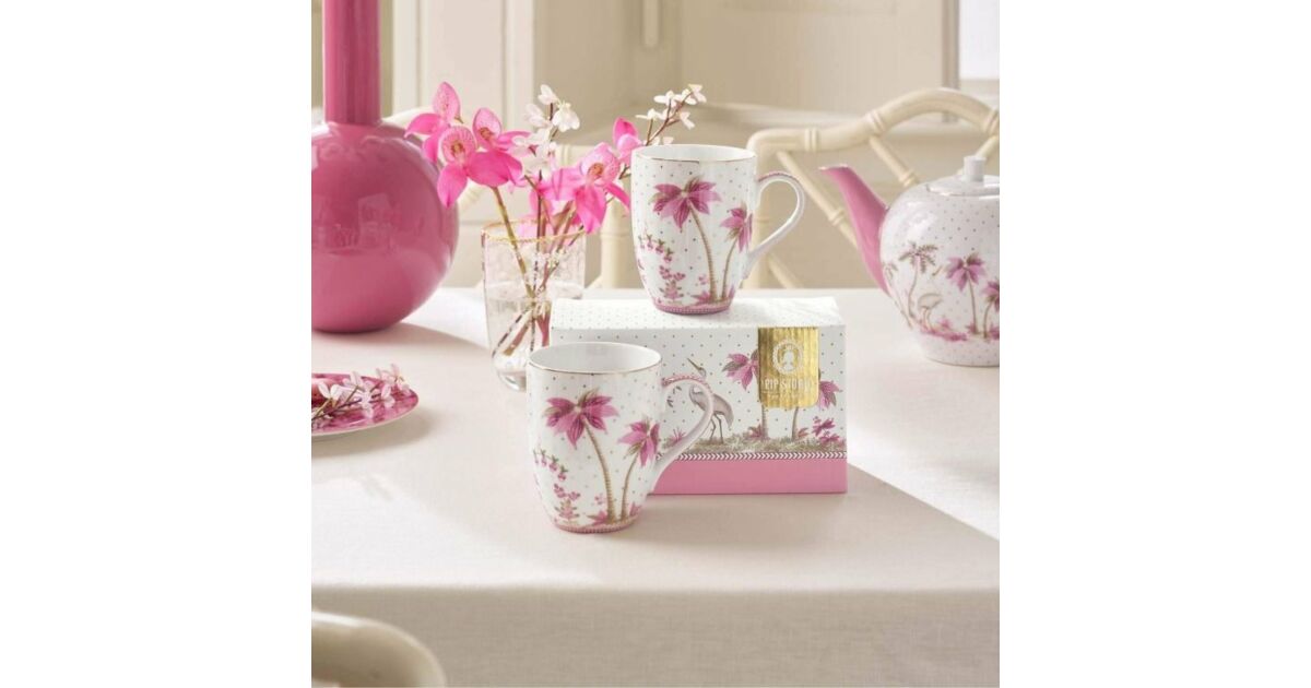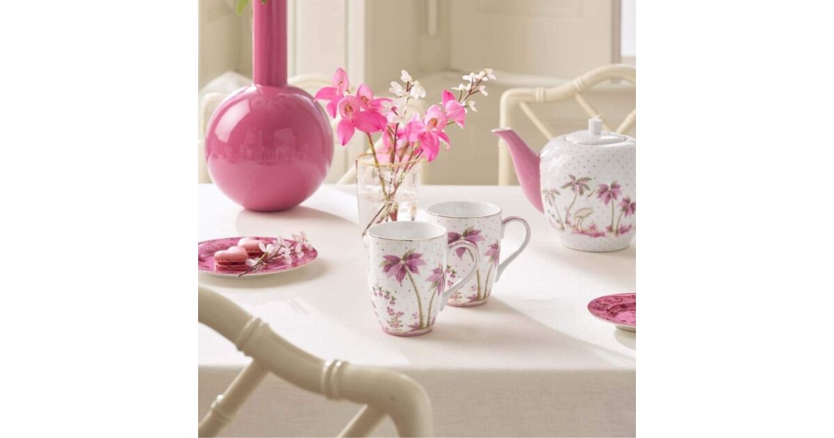 Élvezze a reggeli kávé vagy délutáni tea forró kortyait ezzel a gyönyörű Pip Studio Jolie Dots Gold Pink porcelán bögre készlettel! A finom rózsaszín és arany díszítésű bögrék tökéletes kiegészítői a konyhájának, és kellemes hangulatot teremtenek minden alkalommal.