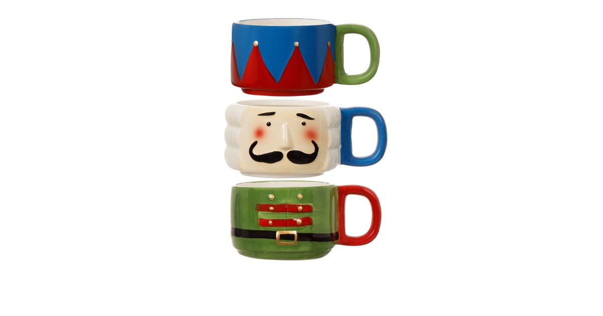 Ezt a terméket így is ismerheted: 3 db-os kávé, tea, karácsonyi bögrék, diótörő készlet, 3D, kerámia, 380 ml