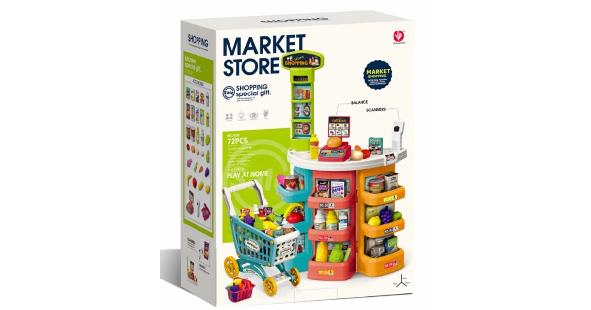 Ez a 72 darabos szupermarket játékszett órákig tartó szórakozást biztosít a kicsiknek! Fejleszti a képzelőerőt, a szerepjátékot és a szociális készségeket. A gurulós bevásárlókocsival a játék még valósághűbb lesz.