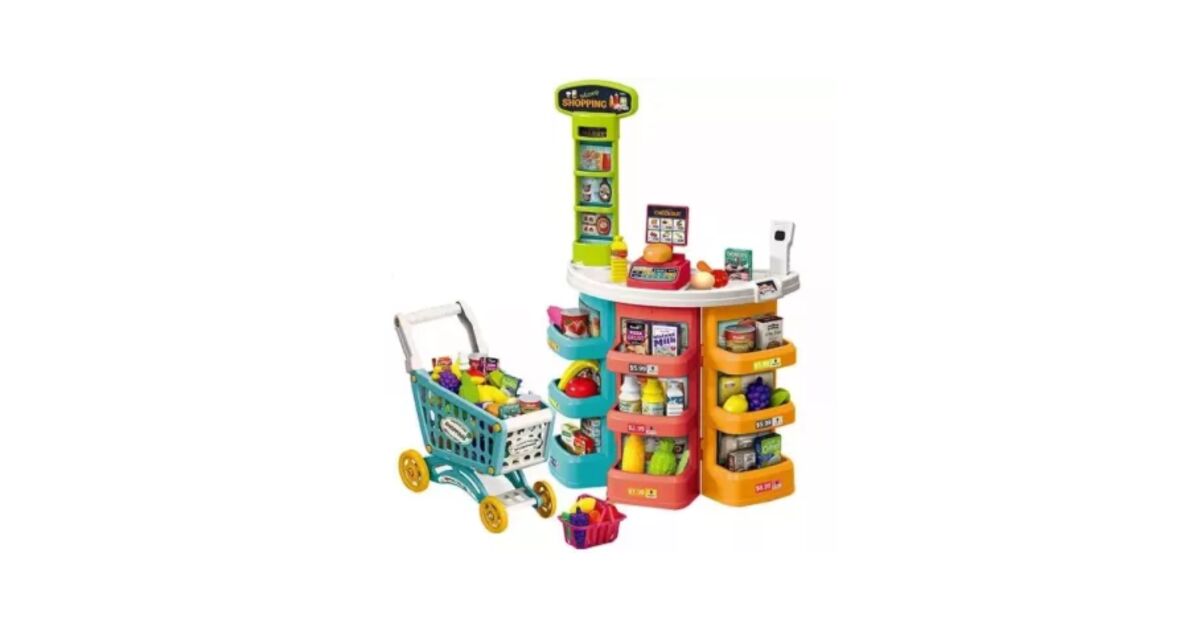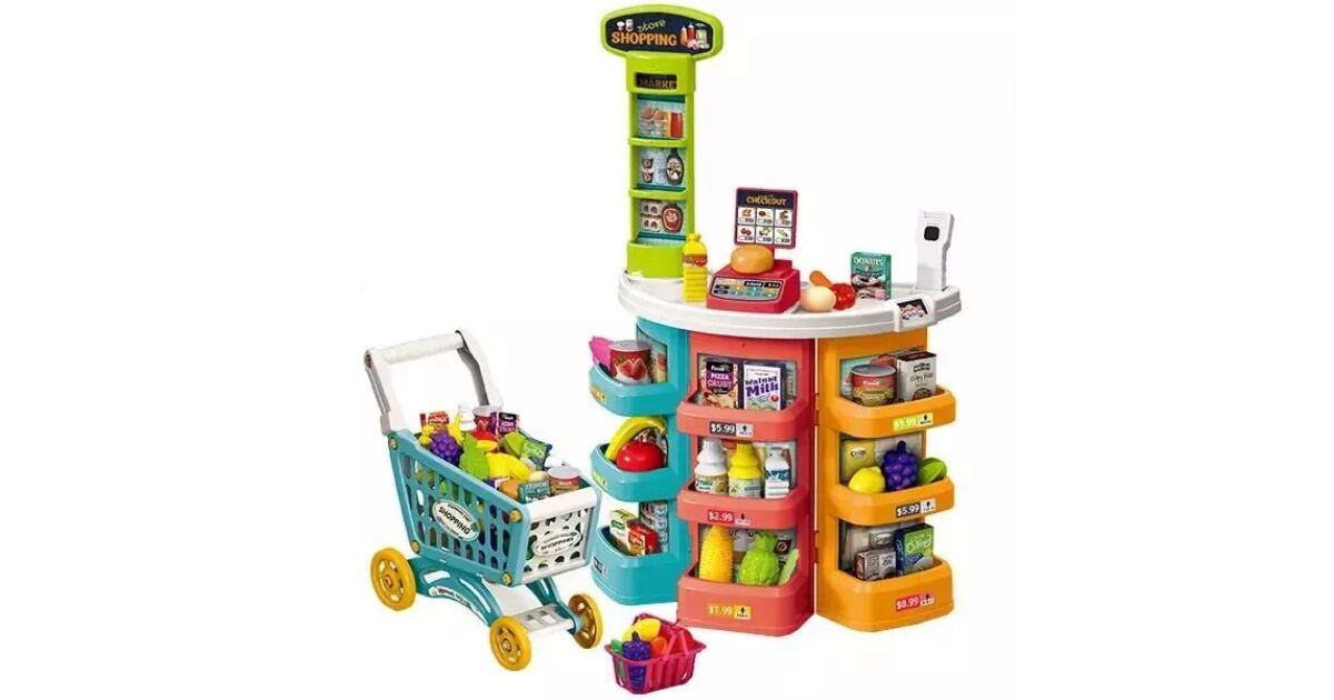 Szupermarket játékszett guruló bevásárlókocsival - 76 db-os szett, 78 cm vásárlás: