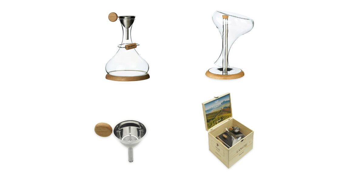 Ez a prémium Legnoart Langhe bordekantáló készlet mindent tartalmaz, amire szüksége van a bor élvezetéhez. Kézműves kivitelű, kiváló minőségű, ólommentes fúvott kristályból és tölgyfából készült. A 2,5 literes dekanter elegánsan mutat bármely asztalon, a szűrőtölcsér pedig gondoskodik a tiszta borról. A készlet egy elegáns tölgyfa dobozban érkezik, így tökéletes ajándék is lehet.