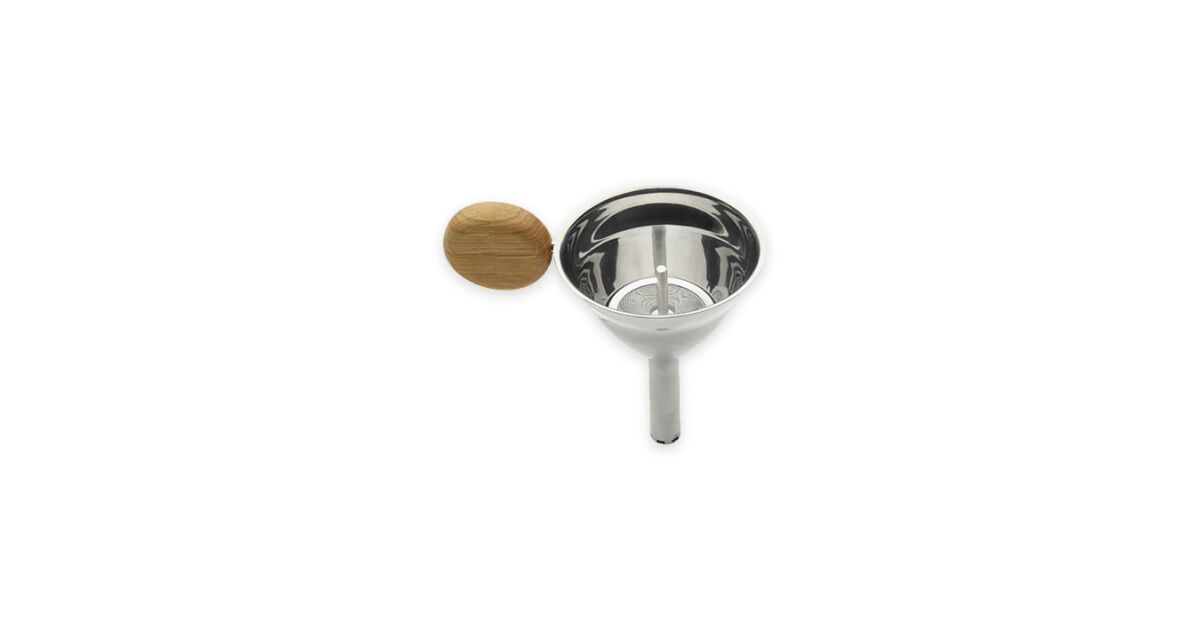 - Rozsdamentes acél szűrőtölcsér fa fogantyúval