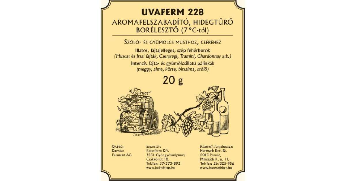 A 228 az érzékszervi tulajdonságokat pozitívan befolyásolja, hideg erjesztésnél (15oC alatt is) látványosan fokozza a fajtajelleget. Elsősorban olyan fajtáknál ajánlott, melyek aromaanyagai között a terpénalkoholok jelentős szereppel bírnak (muskotály fajták, Chardonnay, Irsai Olivér, Cserszegi fűszeres, Tramini, Leányka,Királyleányka stb.).