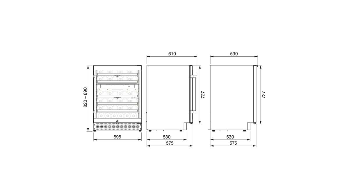 Dometic borhűtő, 46 palack, Dual Zone, H82 cm, hűtőrendszer kompresszorral, beépíthető, állítható hőmérséklet 4°C-22°C, digitális vezérlőpanel, hőmérséklet memória, két réteg UV védelem üveg,