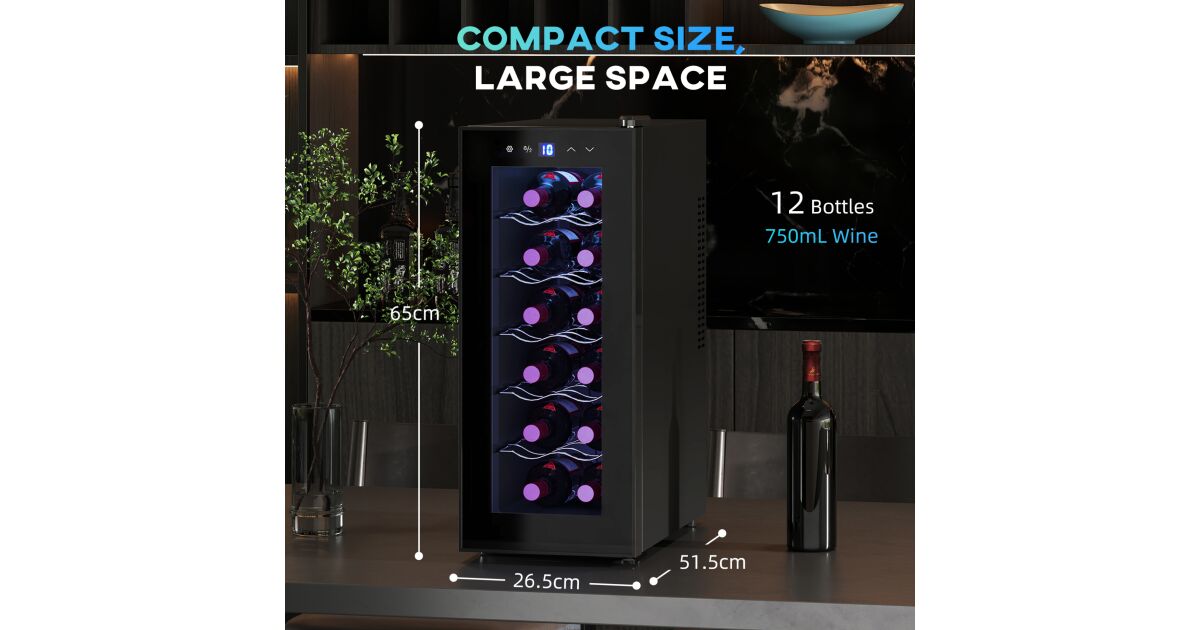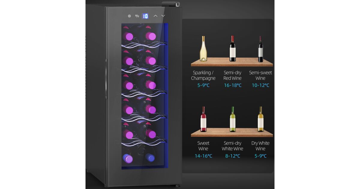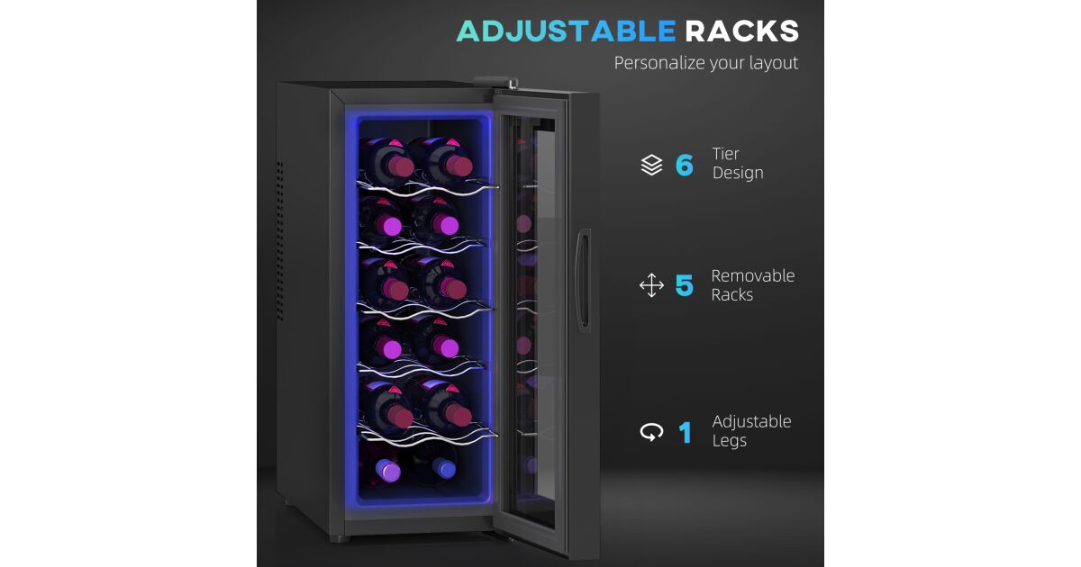 HOMCOM Termoelektromos Borhűtő 12 Üveghez - Elegáns megoldás borai tárolására 🍷