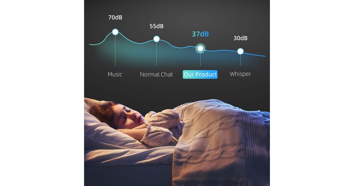 - Csendes működés: Nem zavarja a pihenést (37 dB).