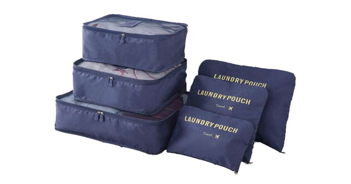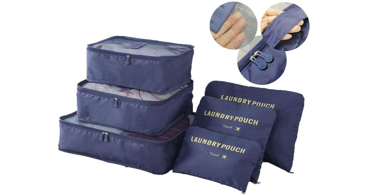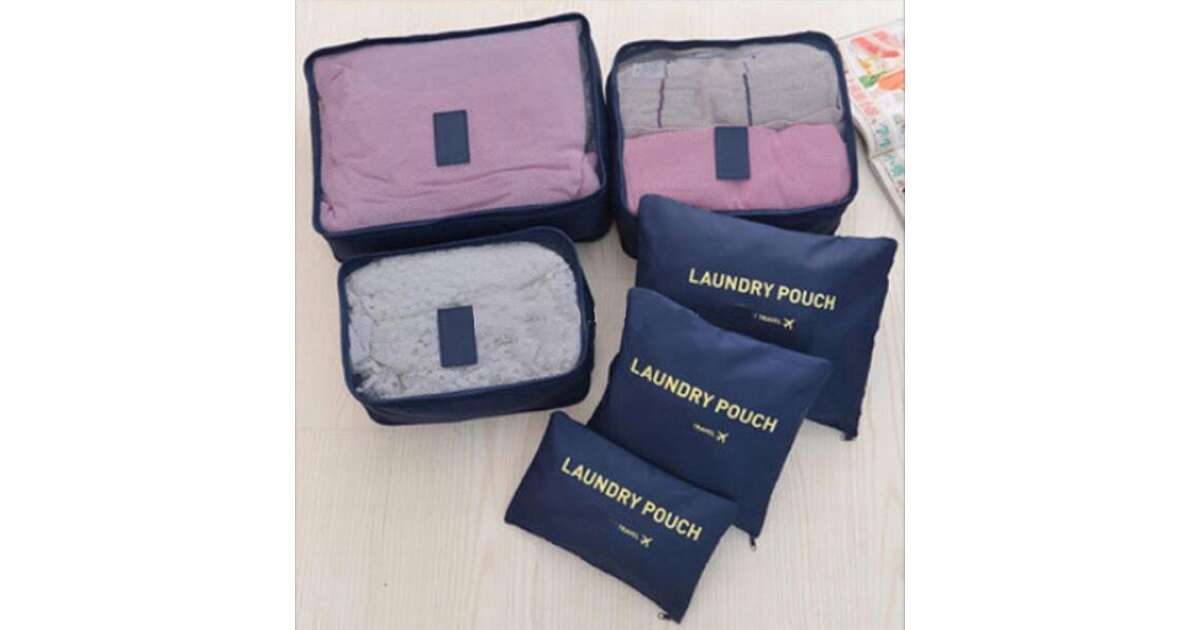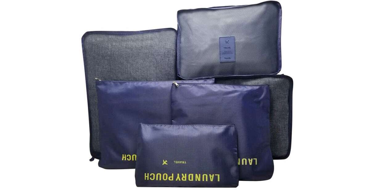 Utazási Bőröndrendszerező Készlet: 6db Cipzáros Táska Sötétkékben 🧳