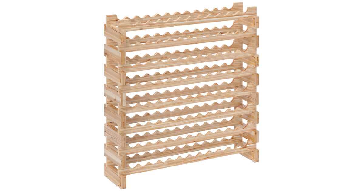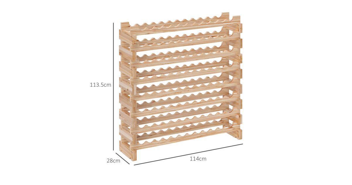 Ezt a terméket így is ismerheted: HOMCOM lucfenyő polc, 96 palack tárolására alkalmas szekrény 8 polccal, maximális teherbírás 100 kg, 114x28x113,5 cm, natúr fa