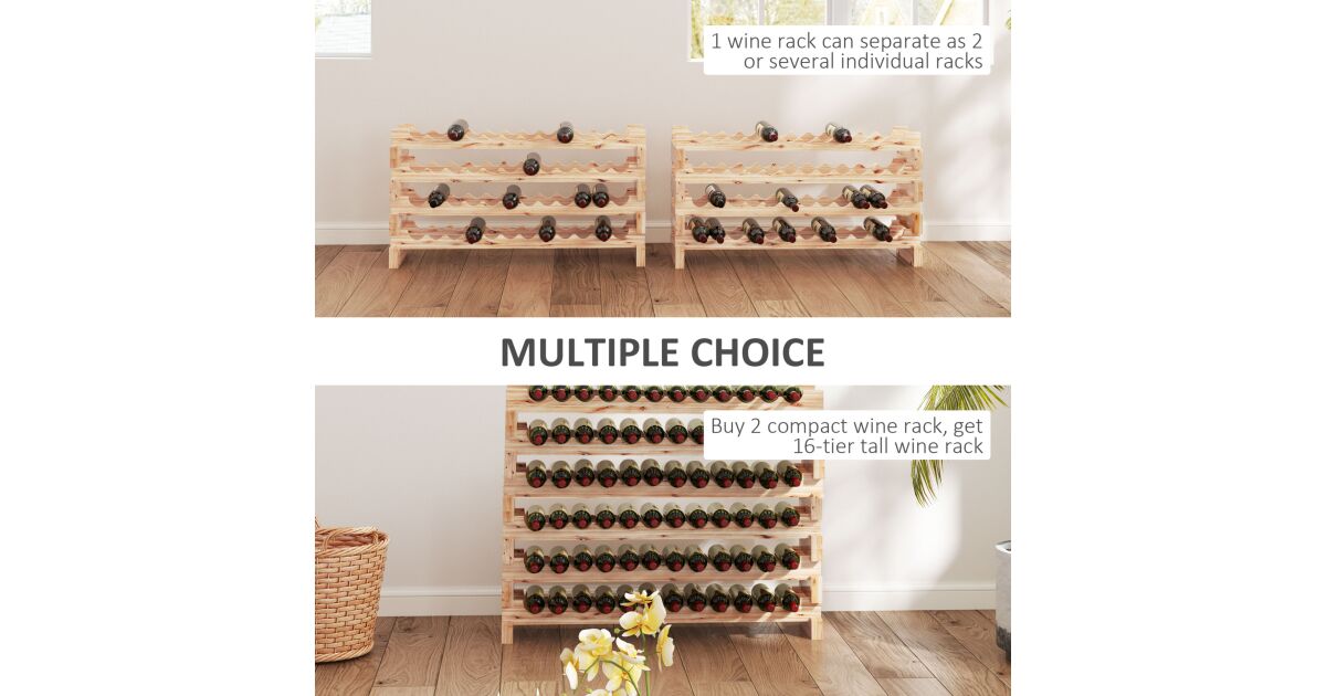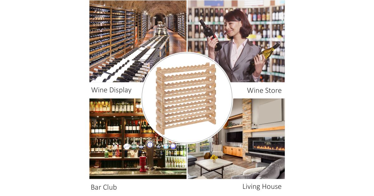 A HOMCOM borállványa tökéletes megoldás, hogy stílusosan tárold és bemutasd borkollekciódat. A természetes lucfenyőből készült, masszív szerkezet akár 96 palackot is biztonságosan megtart, miközben otthonod díszévé válik.