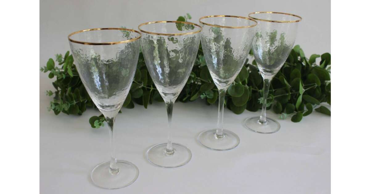 Elegáns üveg borospoharak arany peremmel - 4 darabos szett 🥂