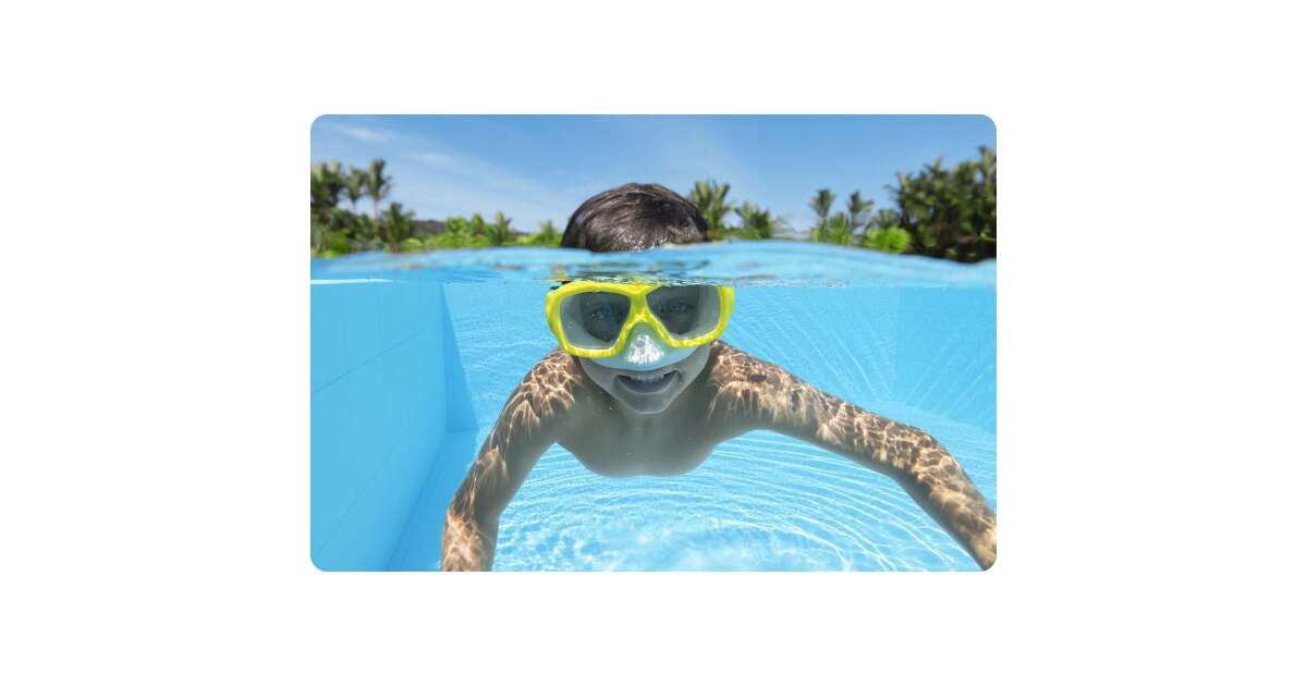 - Széles látómező: A polikarbonát lencse kiváló minőségű, UV-védő bevonattal ellátott, így a gyermekek minden részletet láthatnak a víz alatt.