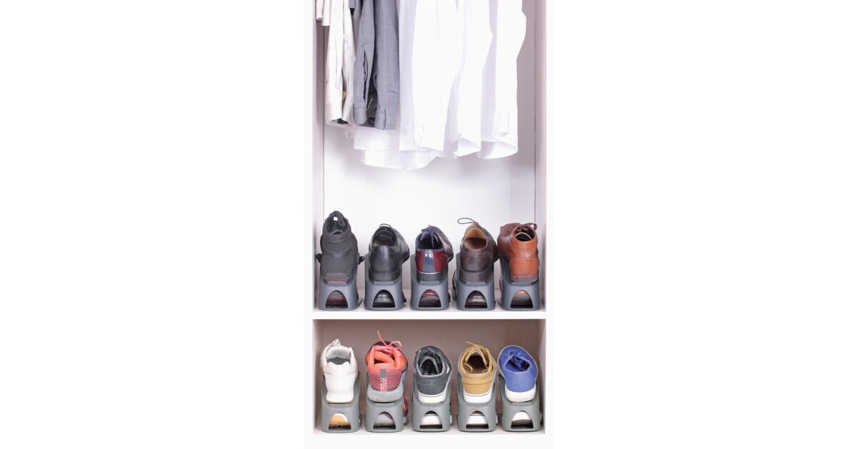Eleged van a cipőinek rendezetlen halmazából? Ez a 4 darabos cipőpolc-szabályozó készlet segít helyet takarítani és rendet teremteni a cipőszekrényben! A rugalmas kialakításnak köszönhetően 38-45-ös méretű cipőkhöz egyaránt alkalmas, akár 12 cm magas cipők is elférnek benne.