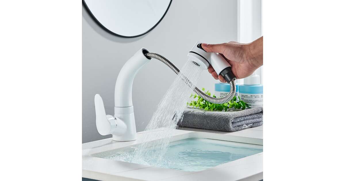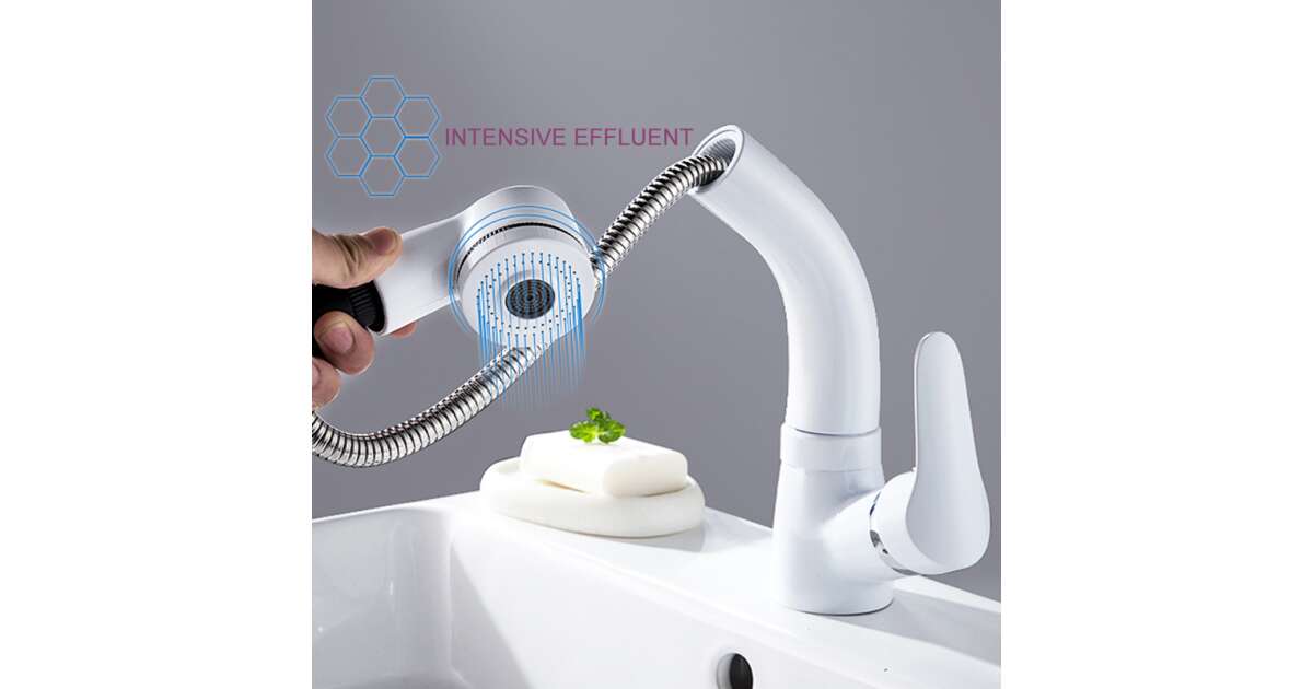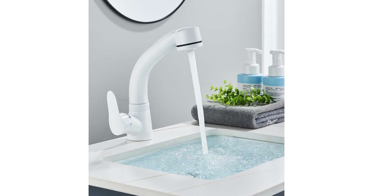 Ezt a terméket így is ismerheted: Fürdőszoba mosogató csaptelep, Blackswan, M178 típus, matt fehér modell visszahúzható csapteleppel, mérete 25 cm