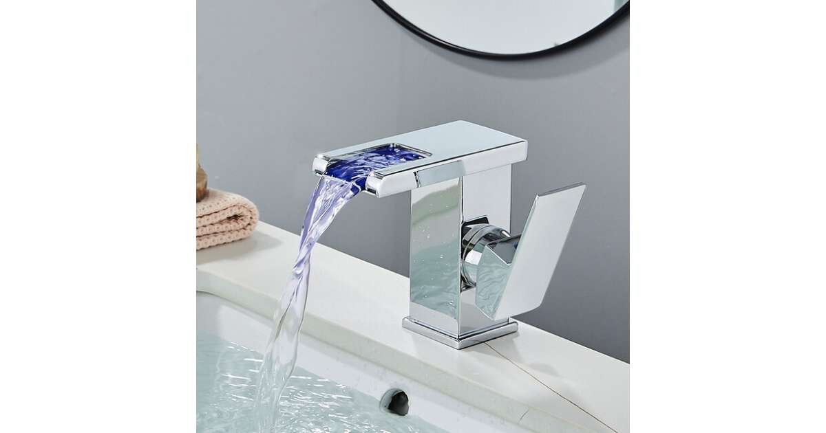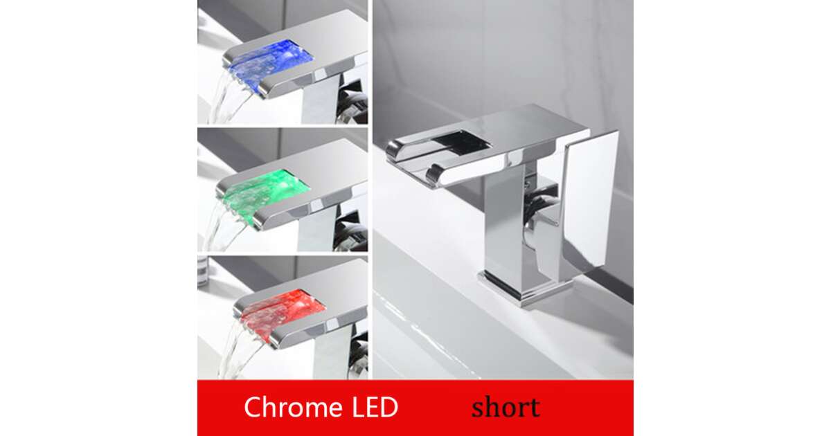 Fürdőszoba mosogató csaptelep, Blackswan, M188 típus, rövid króm modell vízesés csapteleppel és LED-del, mérete 12,5 cm vélemények