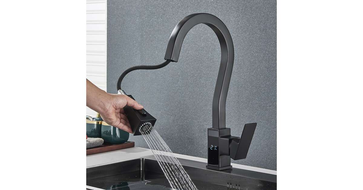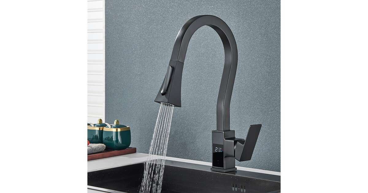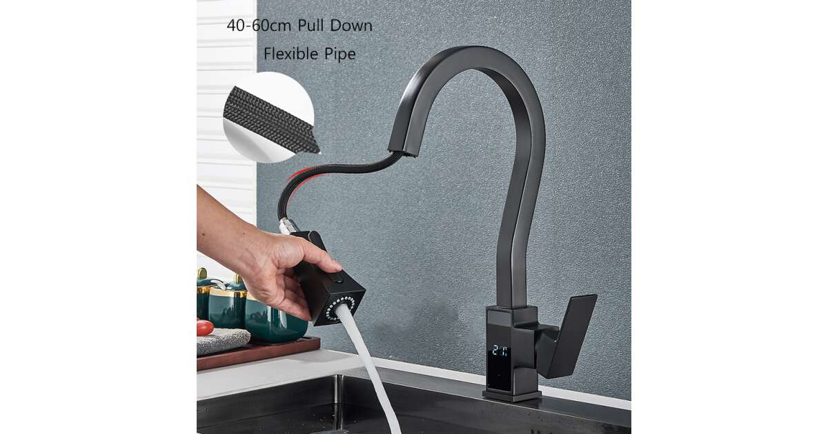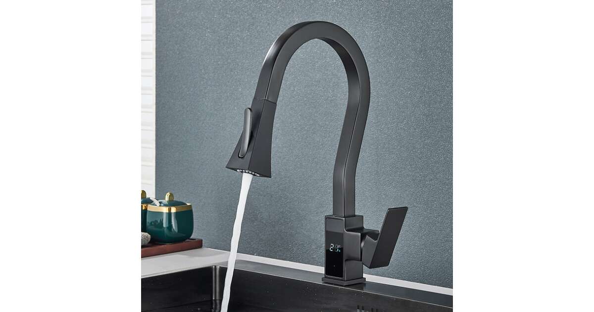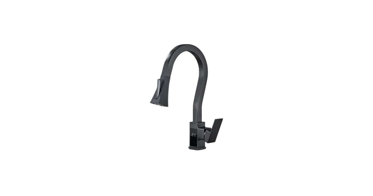 Ez a fekete színű, skandináv stílusú konyhai csaptelep nem csak gyönyörű, de rendkívül praktikus is! A beépített LCD kijelzővel mindig láthatod a víz hőmérsékletét, a 360°-ban forgatható kihúzható spricni pedig megkönnyíti a mosogatást.