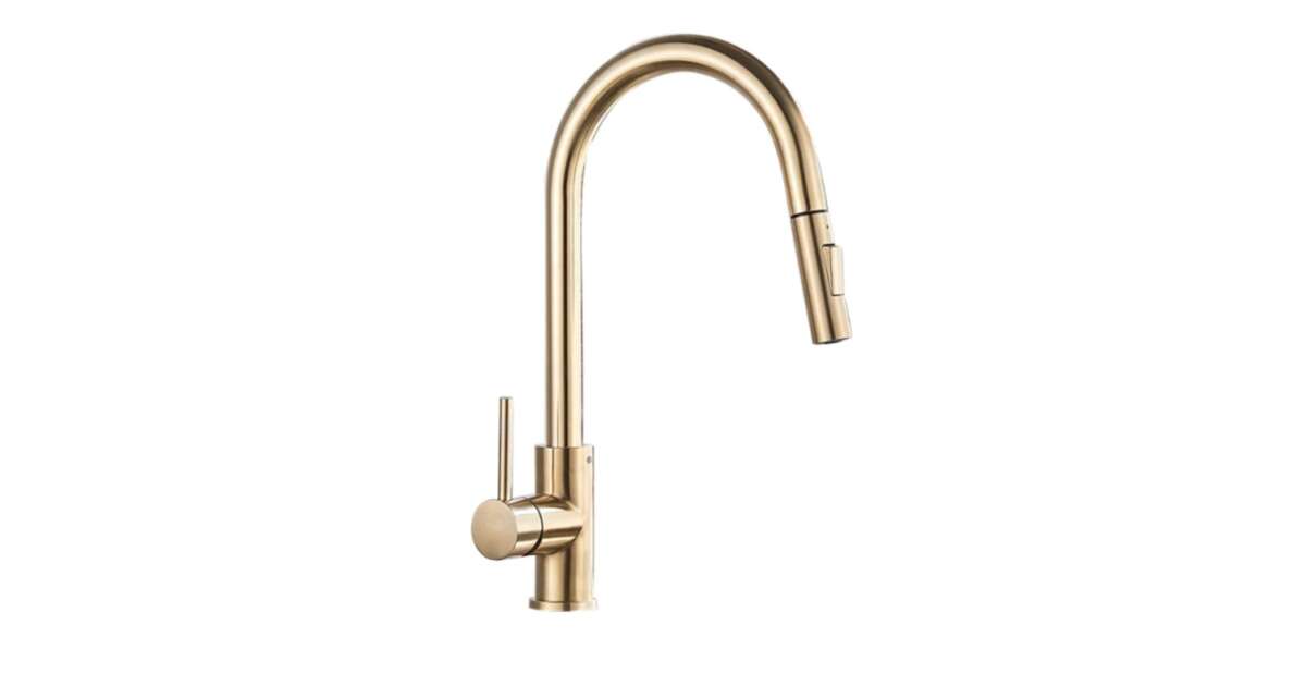 Konyhai mosogató csaptelep, skandináv ihletésű modell, matt arany színű.