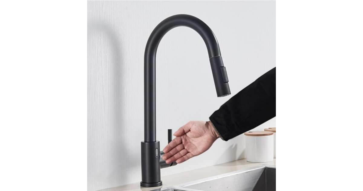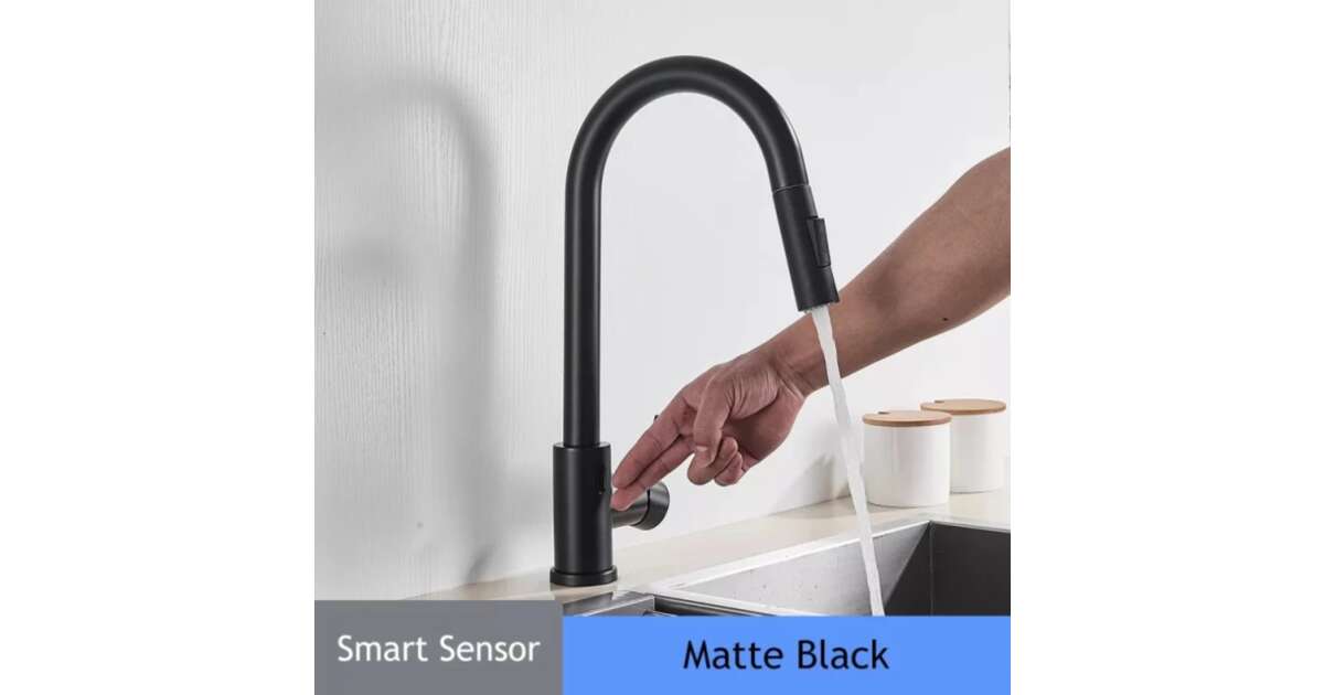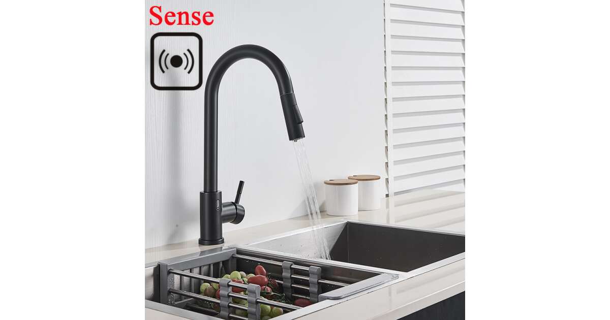 Ez a fekete, skandináv stílusú konyhai csaptelep forradalmasítja a mosogatást intelligens érzékelőjének köszönhetően. Egyszerűen csak közelítsd a kezed a csaphoz a víz elindításához és leállításához – higiénikus és kényelmes megoldás a mindennapokban! ✨