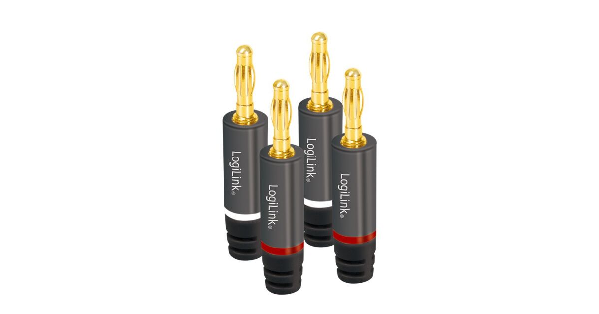 Logilink Audio Banán csatlakozók, 4 db, fém, szürke