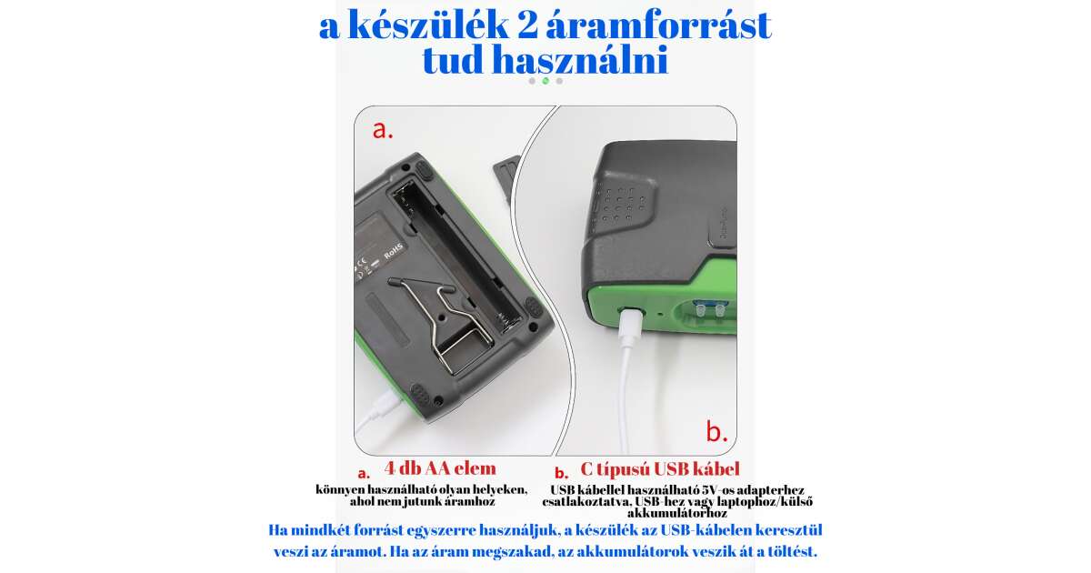 - USB Type-C kábel (5V adapterrel)