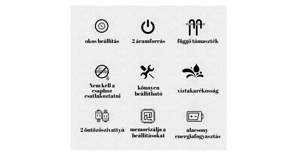 - Memória funkció: Megjegyzi a beállításokat, így újraindítás után is folytatja az öntözést.