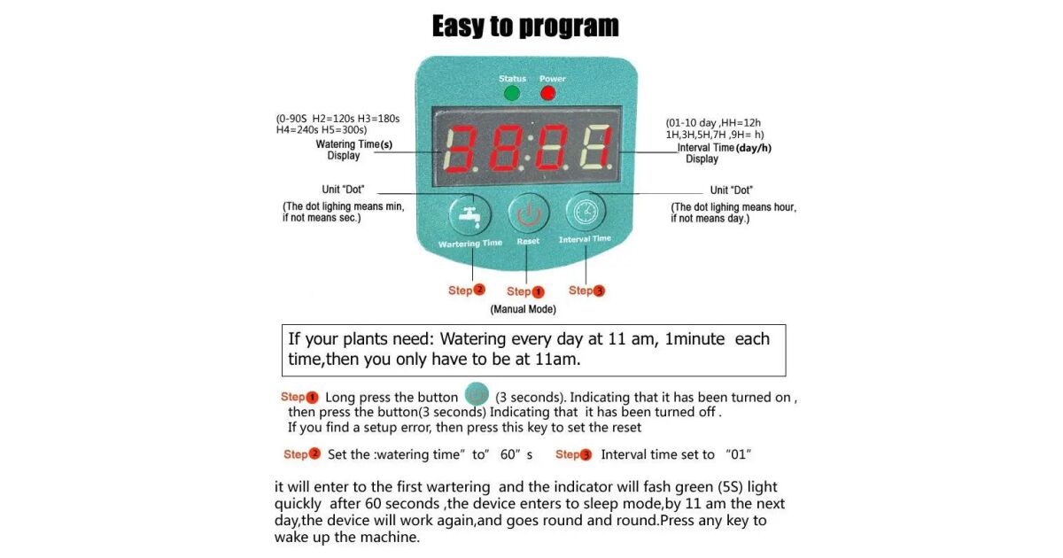 - ⏱️ Időzítő funkció: Beállítható öntözési időpontok és időtartam.