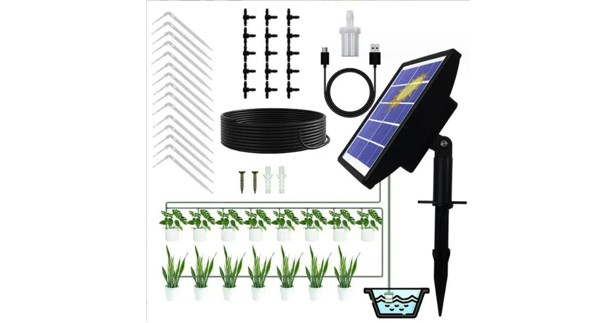 Ezt a terméket így is ismerheted: Napelemes öntözőrendszer – automatikus csepegtető öntöző készlet, önöntöző eszköz, 2000 mAh akkumulátorral"
