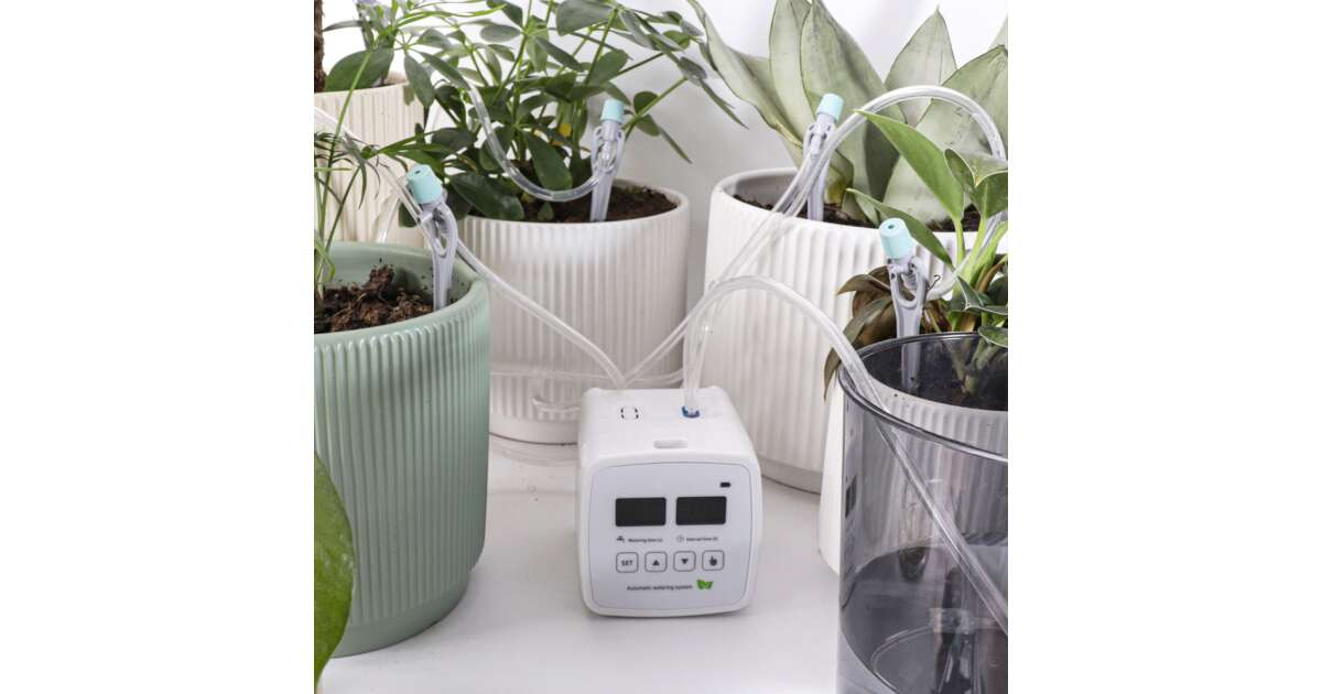 Automatikus öntözőrendszerünk tökéletes megoldás a növények gondoskodásához, akár otthonodban, akár nyaralás alatt is. 15 cserép öntözésére alkalmas, így minden növényed megkapja a szükséges mennyiségű vizet.