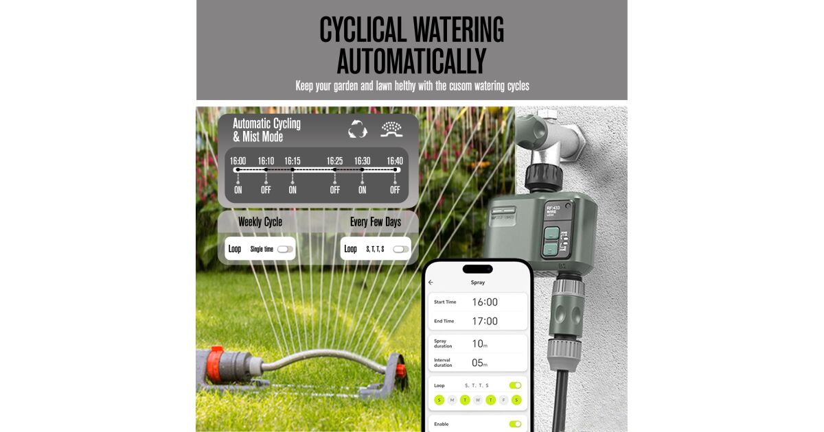 - Egyszerű vezérlés: Irányítsa öntözőrendszerét a Tuya Smart alkalmazáson keresztül, WiFi-n és Bluetooth-on keresztül. 📱