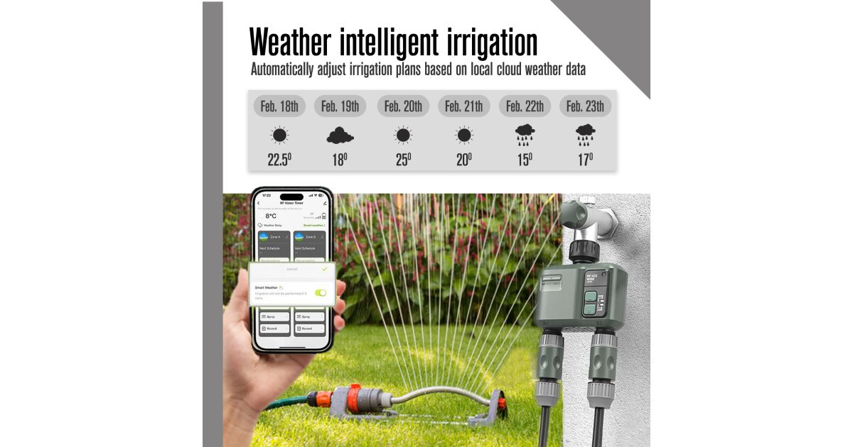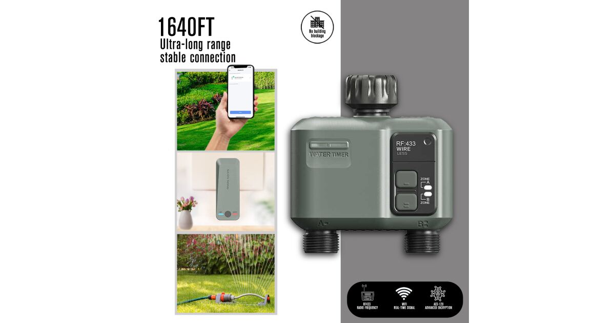 - Két zóna: Különböző öntözési igényű területekhez (pl. gyep és virágágyás) 2 független kimenet. 💧