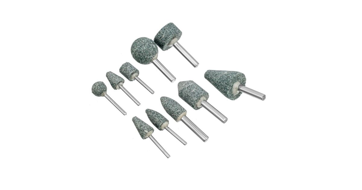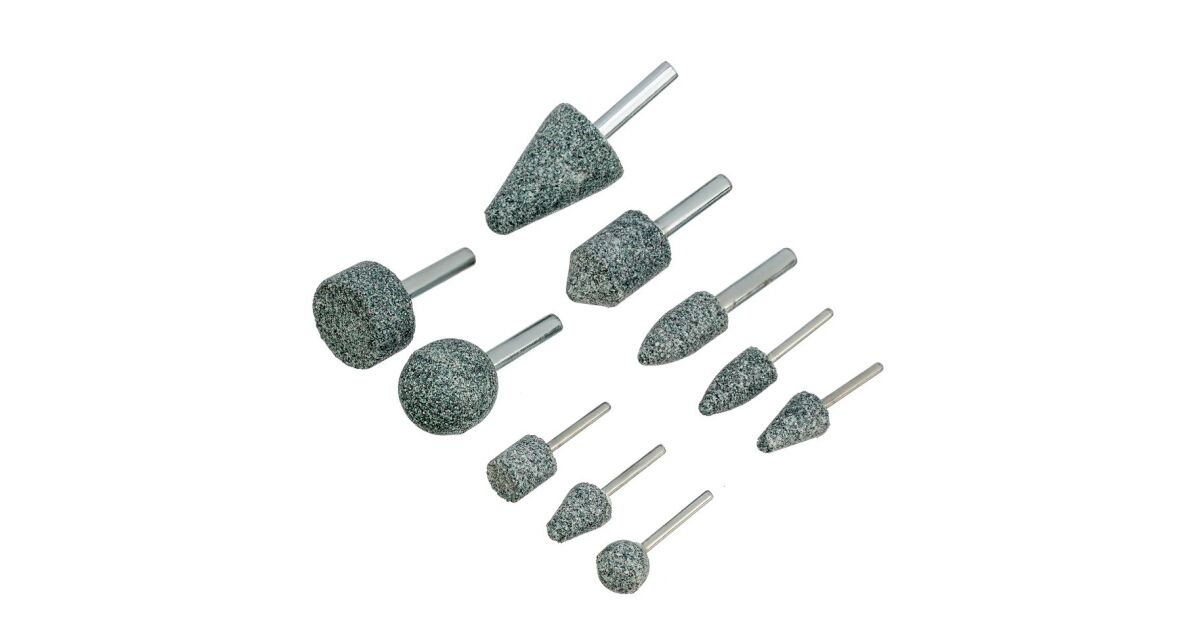 - 10 különböző formájú csiszolófej: Kúp, hosszúkás kúp, henger, gömb, tányér (több méretben)
