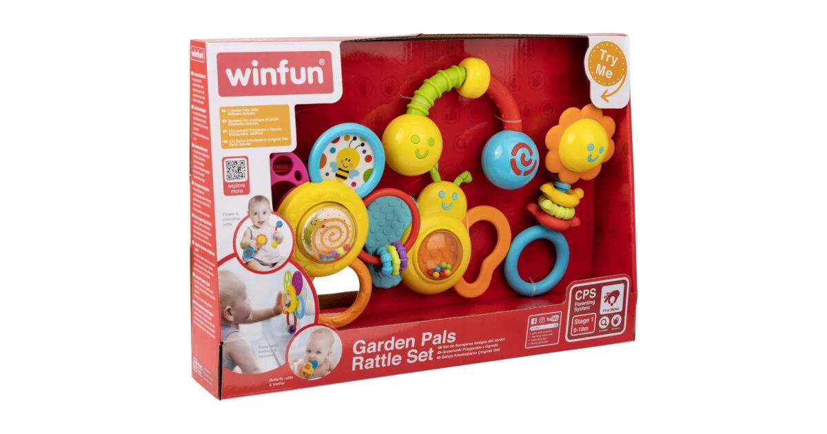 Ez a 4 darabos WinFun Garden Pals csörgő készlet tökéletes választás a babád érzékszerveinek fejlesztésére és a korai fejlődés támogatására 0 hónapos kortól.
