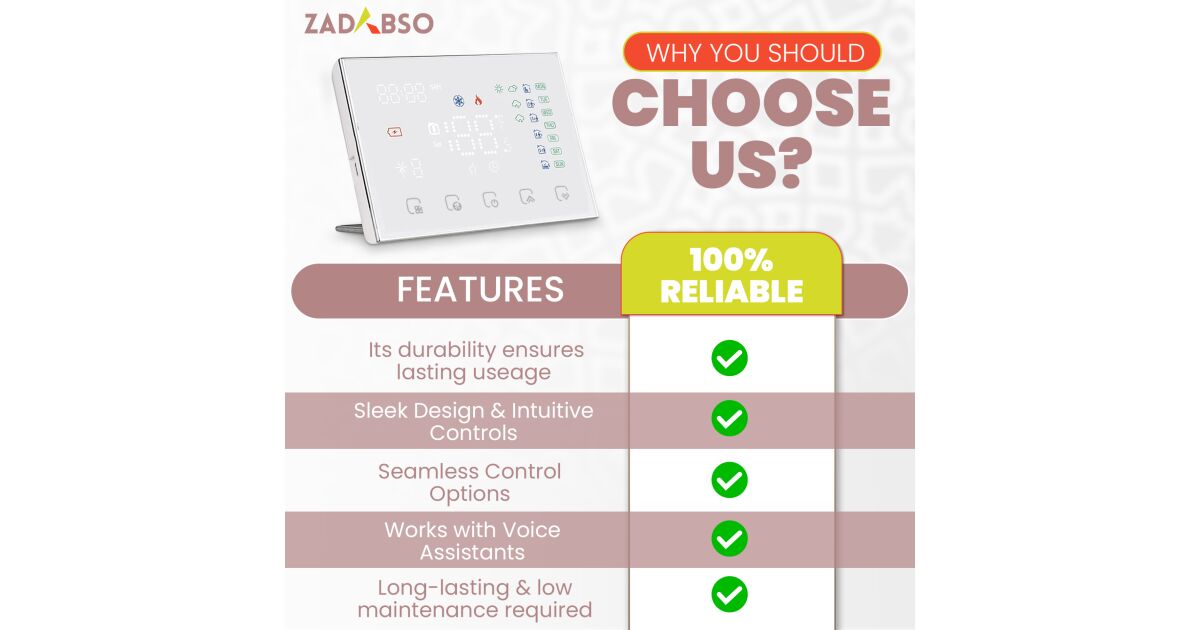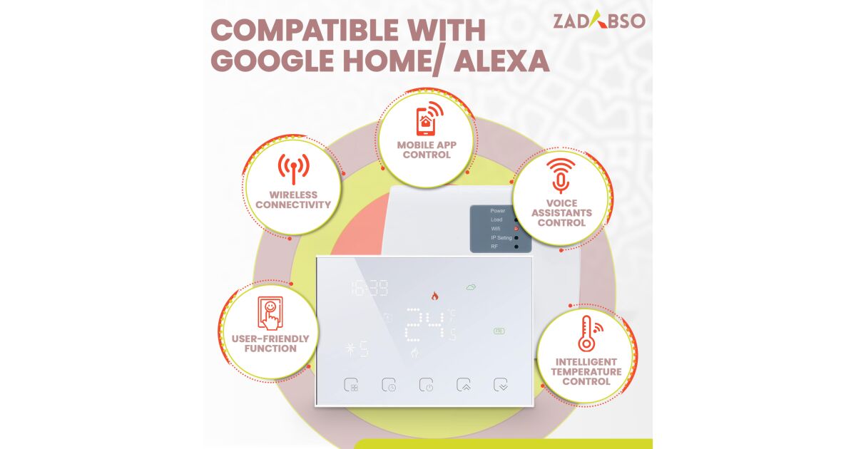- Univerzális kompatibilitás: A Zadabso® termosztát bármilyen gázüzemű központi fűtési rendszerrel integrálható, így nem kell aggódnia a kompatibilitás miatt.