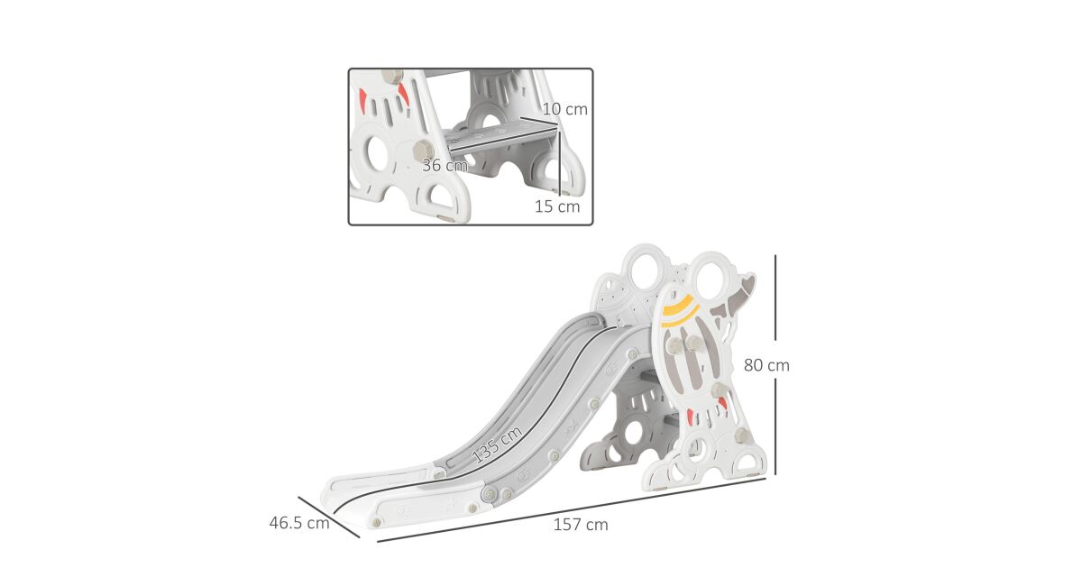 AIYAPLAY csúszda 18-36 hónapos gyermekeknek PE és PP anyagból, űr témával és csúszásgátló lépcsőkkel, 157x46,5x80 cm, szürke és fehér leírása